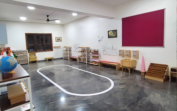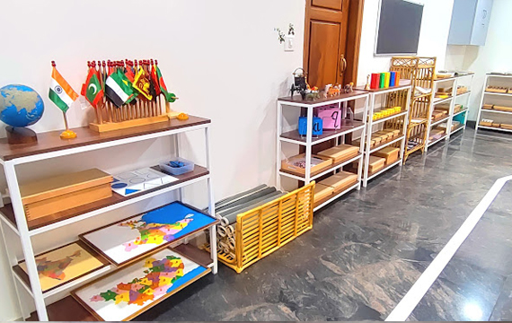 The Environment is Child-Centric that’s designed as per the child needs and development; taken utter care in height of the shelves, arrangement of materials according to the levels.